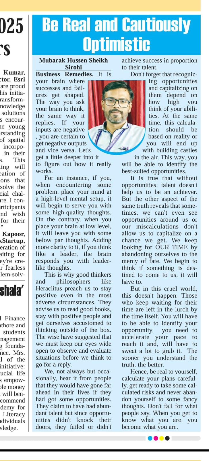 Articles in an English Daily Newspaper, Business Remedies ( Delhi- Jaipur Edition )